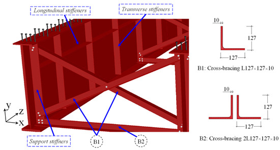 It is important to note that the displacements in the global model of the bridge were applied to the investigated submodel as boundary conditions by performing an interpolation in the intercept region of the models (bridge model and critical detail submodel), taking into account the positioning of both in relation to the coordinate system. The location of the submodel coordinates must be the same as those used in the global model.