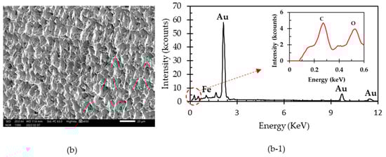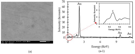 SEM–EDX photomicrographs of gold foil (a) before leaching and the corresponding EDX spectrum (a-1), (b) gold foil after leaching and the subsequent EDX spectrum (b-1).
