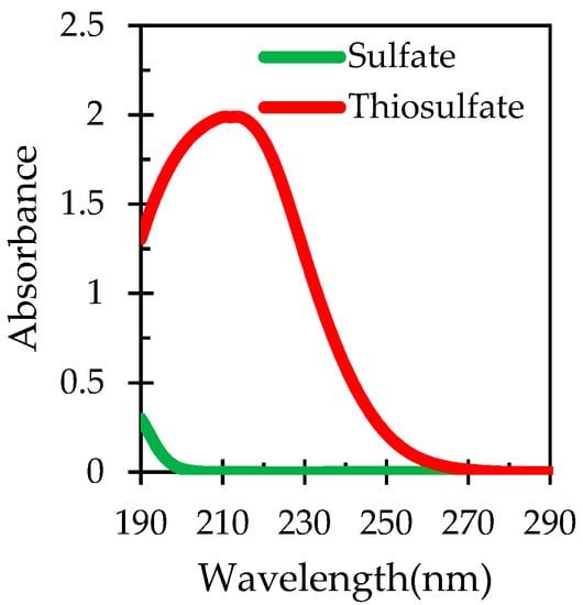 UV–Vis spectra of sulfate (SO42−) and thiosulfate (S2O32−).