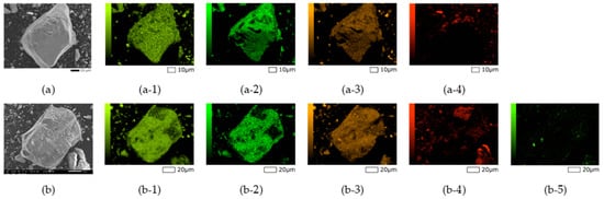 SEM–EDX photomicrographs of (a) HAsBS before treatment and the subsequent elemental maps, (a-1) Fe, (a-2) As, (a-3) S, (a-4) O; (b) pre-oxidized HAsBS; (b-1) Fe, (b-2) As, (b-3) S, (b-4) O and (b-5) Cu.