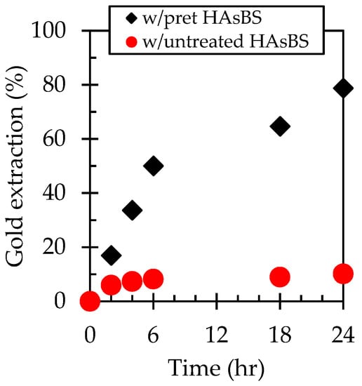3.5.3. Effect of Pre-Oxidation of HAsBS on Gold Extraction