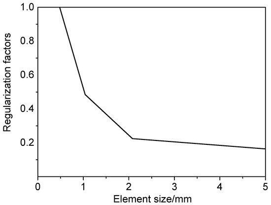 To improve the simulation accuracy of fracture characteristics of the material, a mesh size of 0.5 mm was adopted in the deformed zone for numerical simulation. The main application scenario of the material failure card is collision simulation. In the mainstream car manufacturer as the target user, a mesh size of 5~10 mm is used for collision simulation. Therefore, errors may be caused due to differences in mesh size. In order to avoid these unnecessary errors and improve the simulation accuracy, it is necessary to introduce the fracture mesh coefficient (LCREGD).