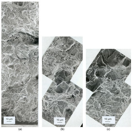 - Thompson, A.W.; Chesnutt, J.C. Identification of a fracture mode: The tearing topography surface. Metall. Trans. A 1982, 10, 379–405. [Google Scholar] [CrossRef]