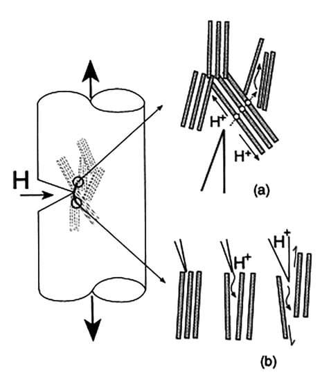 - Sofronis, P.; Liang, Y.; Aravas, N. Hydrogen induced shear localization of the plastic flow in metals and alloys. Eur. J. Mech.-A/Solids 2001, 20, 857–872. [Google Scholar] [CrossRef]