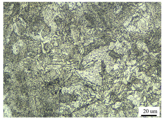 Firstly, Figure 5 shows the metallographic structure photos of axle steel EA4T before deformation. It can be seen that the original structure of axle steel EA4T before deformation is mainly composed of tempered Martensite and Bainite.