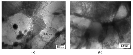 - When the number of strain cycling is 300, a large number of subgrains can be observed in the later stage of the strain cycling experiment [30,35], as shown in Figure 12.