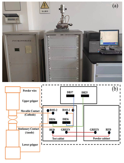JF04C electrical contact test apparatus. (a) Photograph, (b) schema.