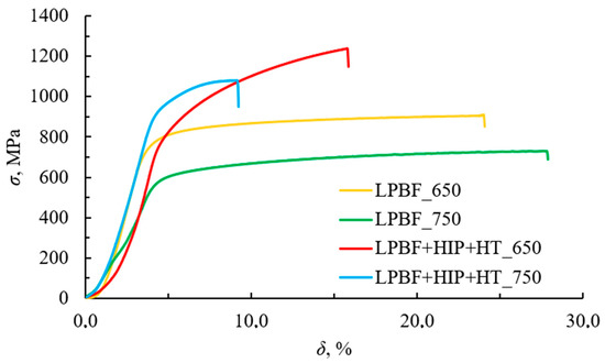 | Condition of the Samples | Ttest, °C | σ, MPa | σ0.2, MPa | δ, % |