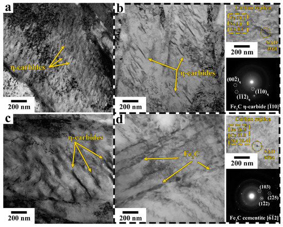 4.1. Precipitated Carbides and Tempering Stages