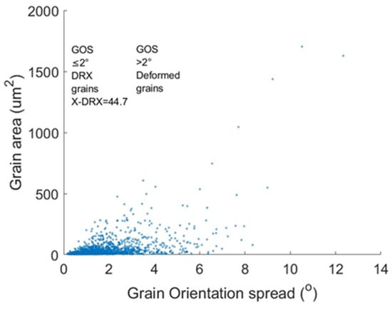 Example plot calculating the DRX fraction using the GOS approach at P1 after 50% primary compression at 1100 °C and 0.001 s−1 of ACCHT material.