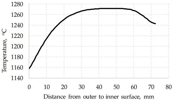 The initial conditions for the temperature distribution (Figure 8) were determined earlier by the finite element method when modeling the piercing of the billet.