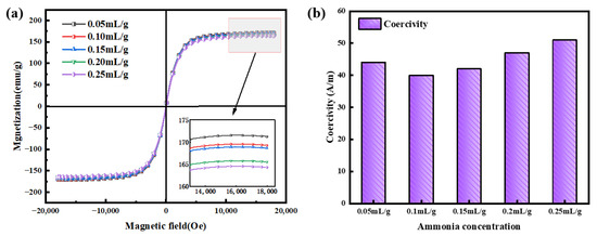 3.3. Effects of Ammonia Concentration on Magnetic Properties