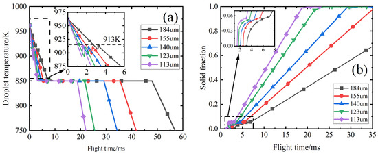 The heat loss of the droplet during flight is compensated for by the enthalpy of the droplet. The change rate of the enthalpy of the metal droplet can be expressed by the relationship between the temperature of the metal droplet and the solid fraction during solidification. According to the conservation of energy, we can obtain the following formula: