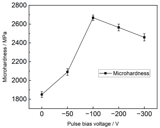 Microhardness of the AlCrSiN coatings deposited at different pulse bias voltages.