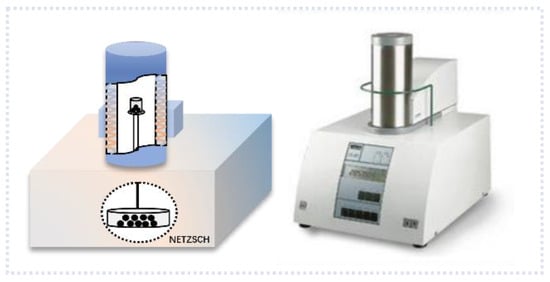 The thermal analysis instrument (STA449C-QMS403C) used in the experiment was produced by Netzsch, Germany, as shown in Figure 1. This instrument can measure the quality of the sample with changing temperature for an in-depth analysis of the thermal stability, decomposition behavior, and composition of the material. The furnace body has a vacuum-sealing design. The instrument has a top-loading configuration—that is, the sample is weighed on top of the balance. The atmosphere is characterized by bottom-to-top flow. When the furnace body is opened, the sample support separates from the weighing system, which is conducive to the protection of the weighing system.