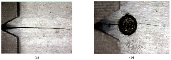 To study the effect of the initial crack angle on the crack propagation, initial cracks at four angles of 0°, 30°, 45°, and 60° were prefabricated on the specimens in this study. The initial crack length was 1.5 mm with a 7 kN load level, thickness of 8 mm, and stress ratio of 0.1.