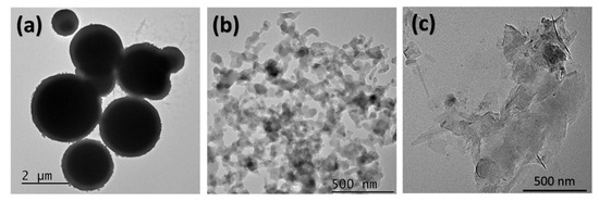 TEM images of the copper powder and reinforcement particles: (a) pure copper powder, (b) silicon nitride nanoparticles (Si3N4), and (c) boron carbide (B4C) particles.