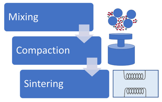 - Schramm Deschamps, I.; dos Santos Avila, D.; Vanzuita Piazera, E.; Dudley Cruz, R.C.; Aguilar, C.; Klein, A.N. Design of In Situ Metal Matrix Composites Produced by Powder Metallurgy—A Critical Review. Metals 2022, 12, 2073. [Google Scholar] [CrossRef]
