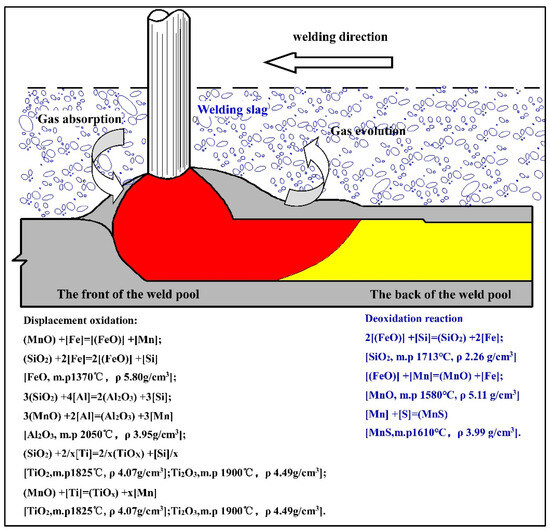 - Potapov, N.; Volobuev, Y.S.; Feklistov, S. Consequences of the reaction between metal and slag during melting welding. Weld. Int. 2021, 35, 454–458. [Google Scholar] [CrossRef]