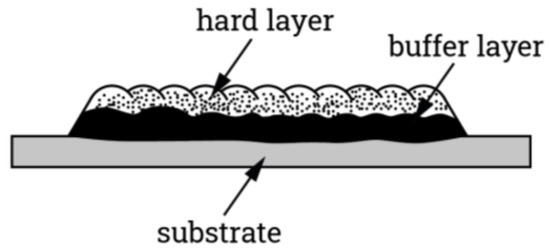 Buffer layers are the intermediate deposits made between the substrate and the actual hardface deposits, as shown in Figure 9. A buffer layer may be required for: (i) hardfacing a soft substrate for high-load conditions, (ii) hardfacing components that are subjected to flexing or heavy impact, and (iii) hardfacing for repair works [2,60]. The buffer layer also fulfils the need of metallic transition required for a sound deposit and may function as a corrosion prevention barrier. Using low- to medium-alloy steels provides intermediate hardness between the substrate and hardface, preventing crushing of the substrate by the hardface during a heavy external load. Using austenite stainless steel as a buffer layer absorbs the contraction stress without cracking, which eliminates the need for preheating [1]. Buffer layers are usually advisable when depositing hard and brittle alloys, like chrome carbide, to soft substrates, like mild steel [49].