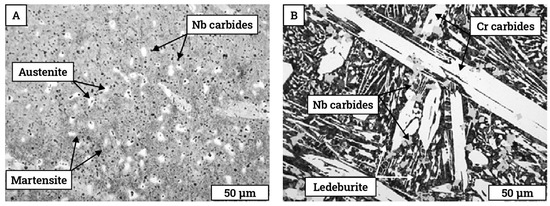 - Sadeghi, F.; Najafi, H.; Abbasi, A. The effect of Ta substitution for Nb on the microstructure and wear resistance of an Fe-Cr-C hardfacing alloy. Surf. Coat. Technol. 2017, 324, 85–91. [Google Scholar] [CrossRef]