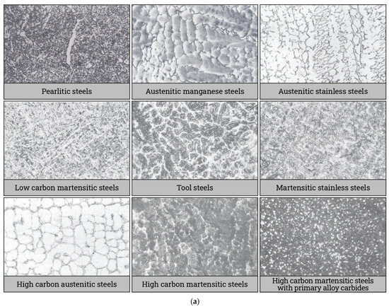 Hardfacing can be successfully applied to different types of base metals. Steels are probably the most common substrate. The different categories of steels that can be used as a substrate can be classified into nine groups: (i) low carbon steel, (ii) medium carbon steel, (iii) high carbon steel, (iv) tool steel, (v) austenitic stainless steel, (vi) austenitic manganese steel, (vii) plain chromium stainless steel, (viii) nickel chromium steel, and (ix) cast iron (grey and white) [13,48,49,51,60]. Usually, low carbon steel, austenitic stainless steel, austenitic manganese steel, and plain chromium stainless steel do not require preheating, or it can be conditional. However, for other groups of steels, preheating is usually required to reduce the risk of stress-induced cracking.