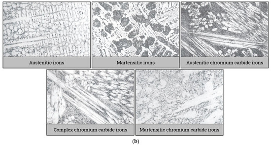 - Doğan, Ö.N.; Hawk, J.A.; Laird, G. Solidification structure and abrasion resistance of high chromium white irons. Metall. Mater. Trans. A 1997, 28, 1315–1328. [Google Scholar] [CrossRef]