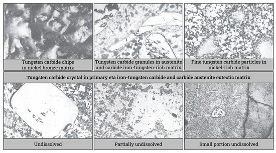 - Zhou, Y.; Liu, R.; Liu, H.; Yan, Y.; Zhang, L.; Zhou, W.; Yu, W.; Dong, C. Influence of tungsten carbide raw materials to microstructure and wear performance on PTA hard-facing materials with its micro-mechanism analysis. Surf. Coat. Technol. 2023, 454, 129200. [Google Scholar] [CrossRef]