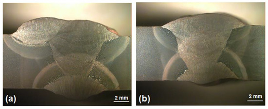 The heat input influences the size, hardness, and microstructure of HAZ [73,74,75], which ultimately affects the intended application of the structure. Usually, lower heat inputs are suggested to minimise the thermal damage, dilution, and distortion on the base metal. For instance, as shown in Figure 7, higher heat input during welding of high strength low alloy (HSLA) steel increased the width of the soft region and overall area of the HAZ, which increased the area of lower hardness and reduced the bulk hardness of the base metal. Likewise, earlier welding studies have also suggested that optimising the welding heat input is significant in achieving optimum weld quality [76,77,78].