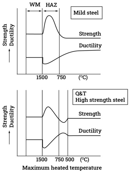 - Mohandas, T.; Madhusudan Reddy, G.; Satish Kumar, B. Heat-affected zone softening in high-strength low-alloy steels. J. Mater. Process. Technol. 1999, 88, 284–294. [Google Scholar] [CrossRef]