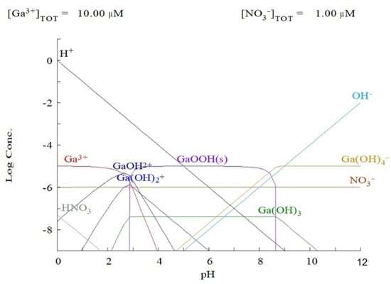 Chemical speciation diagram for Ga, generated using Hydra/Medusa software.