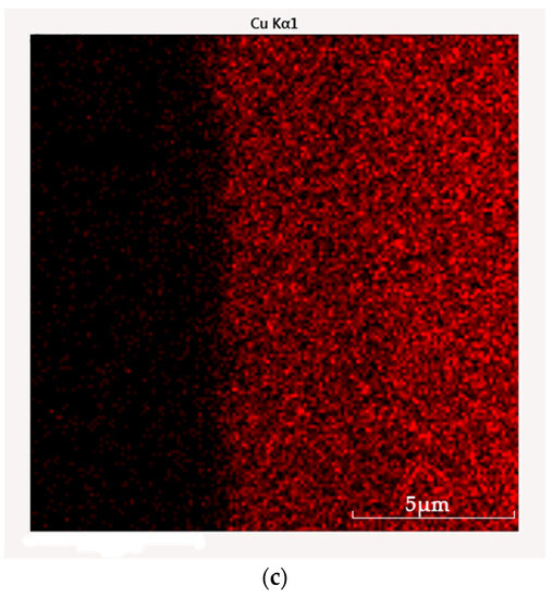EDS Image of Copper Aluminum Solid Liquid Interface Layer (a)—Copper aluminum EDS layered images; (b)—Al atom distribution map; (c)—Cu atom distribution map).