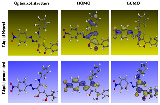 Best molecular forms of the inhibitor and its HOMO and LUMO identified using DFT calculations in the aqueous phase.