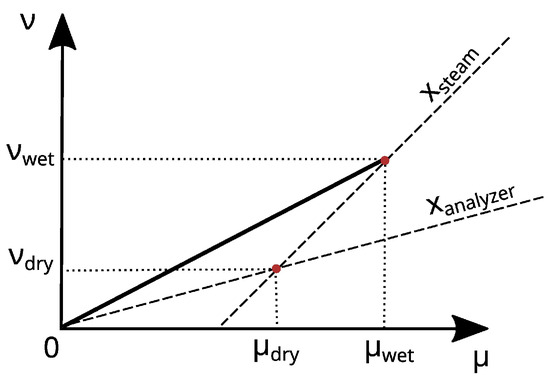 - In addition, we can perform a vector decomposition of the wet gas using the gas mixing methodology explained in Section 2.3.2. We thus define the “wet line” as the line with slope xH2O equal to 1, passing through the node associated with the wet gas: