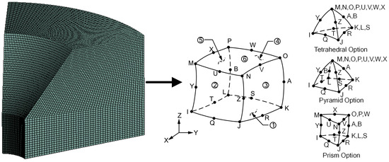 A 20-noded element (SOLID 186) was used in the 3D models, where the size of each element plot in the geometry model is 0.5 mm. Figure 4 is the elements’ plot of the cylinder and homogeneous unit’s geometry of solid 186.