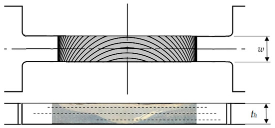 Macrostructure of the sample tested at 550 °C-18/105 MPa. The variation in the sample thickness (th, see Figure 1) is evident.