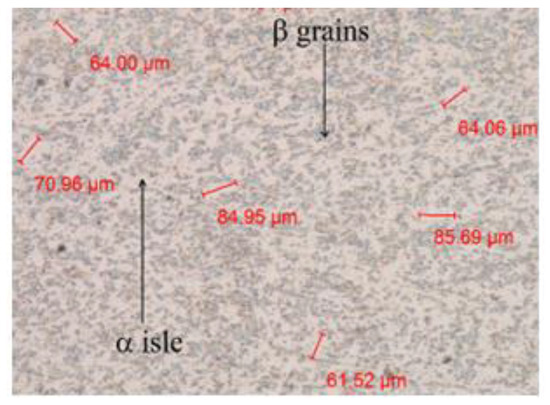 Optical micrograph of the substrate (Ti-6Al-4V) microstructure.