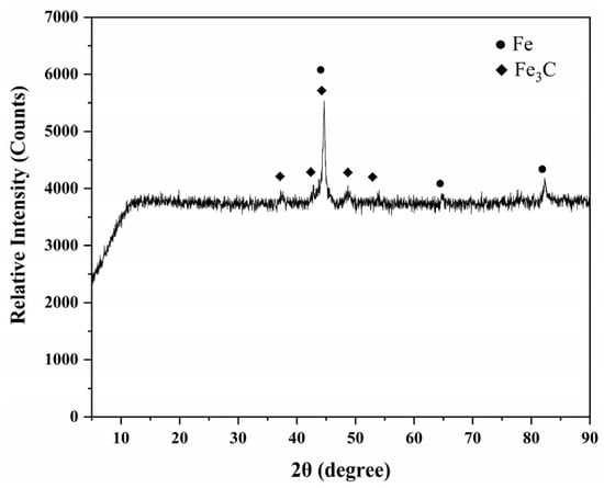 As can be seen in Figure 17, XRD can only recognize the Fe and Fe3C phases, and cannot further distinguish the complex structures in the pig iron. Due to the low Ti impurity content, the inclusions phase could not be recognized.