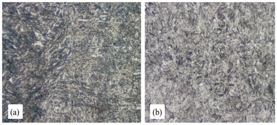 Figure 4 shows photomicrographs using optical microscopy; the images were obtained from the C2 zone of the Navy C-rings at the surface and core of the piece, Figure 5a,b, respectively.