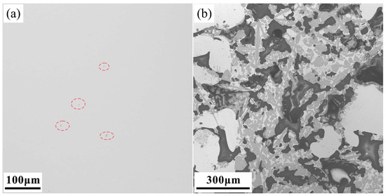 The SEM images displayed in Figure 10 reveal that the residue obtained under different gravity coefficients contains a significant number of Fe-Al-Zn particles along with numerous pores resulting from the separation of molten zinc into the lower crucible. The porosity of the residue samples was determined by analyzing the volume fraction of pores in the SEM images using the ImageJ software, and the results are presented in Table 4. The data show that the residue porosity is 27.28% at G = 80 and gradually increases to 37.79% and 42.84% as the gravity coefficient increases to 300 and 1000, respectively. Thus, it can be observed that an increase in the gravity coefficient leads to a corresponding increase in the residual porosity, which can be attributed to the separation of more molten zinc into the lower crucible at higher gravity coefficients, resulting in the formation of more pores in the residue.
