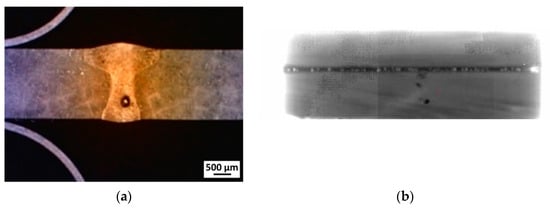 All the welded samples were examined by digital radiography (GE Sensing & Inspection Technologies, Ahrenburg, Germany) to detect the presence of porosity and cracks.