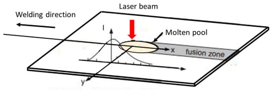 The welding process is schematically displayed in Figure 8. The advancement of the laser beam induces heating of the material all around the molten pool.