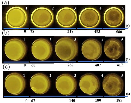 The last segment, Segment 5 of Figure 4a–c, represents the final stage of the foaming process. This phase is characterized by the absence of changes in the height and volume of the slag foam aligned with the almost completely reacted carbon source.