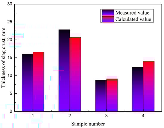 Comparison between measured and calculated thicknesses of slag crust samples.