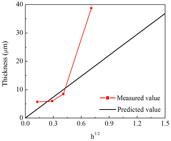 In the previous work, a linear relationship between the thickness of the compound and the annealing time was reported [30]. Thus, the diffusion mechanism governs the growth of the compounds. In general, the thickness of the intermetallic compound layer increases linearly with the square root of the holding time. This can be expressed by the following empirical law: