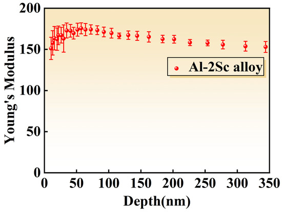 Young’s modulus of Al3Sc as a function of indentation depth.