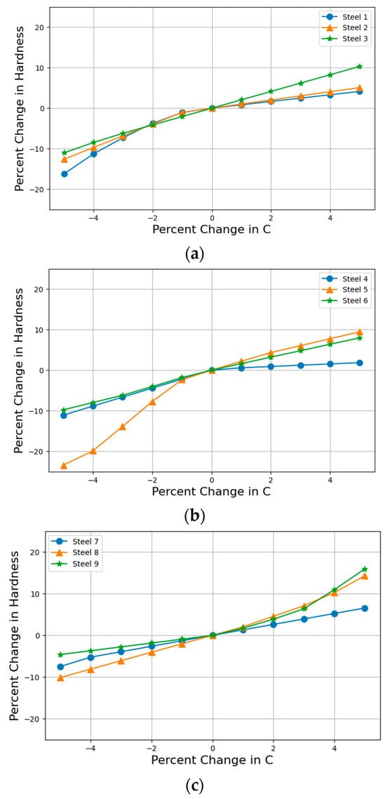 4.2.1. Analysis of the Impact of Carbon Content on the Hardness of Steel