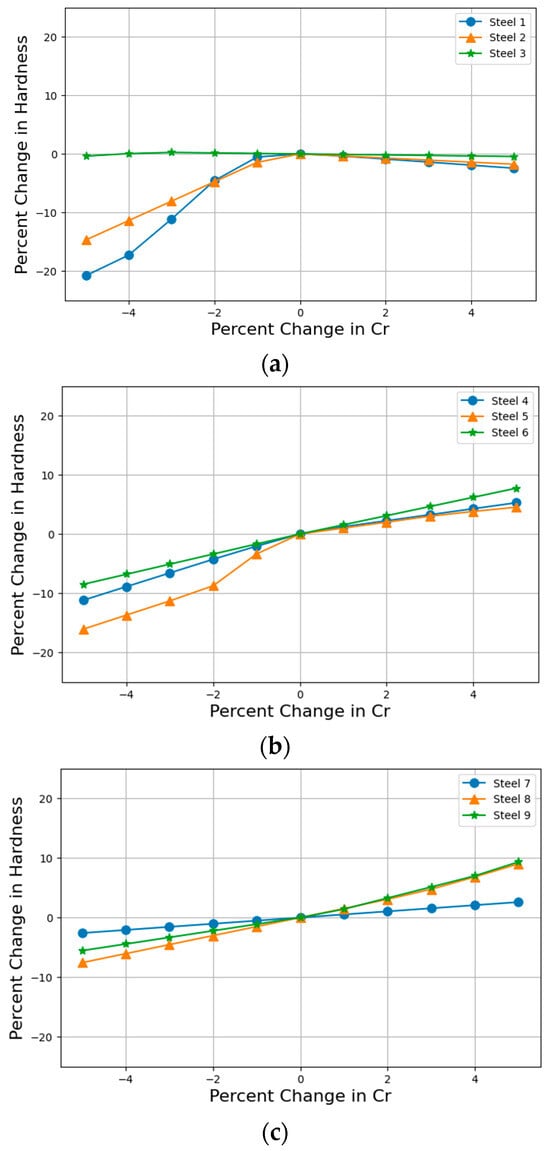4.2.2. Analysis of the Impact of Chromium Content on the Hardness of Steel