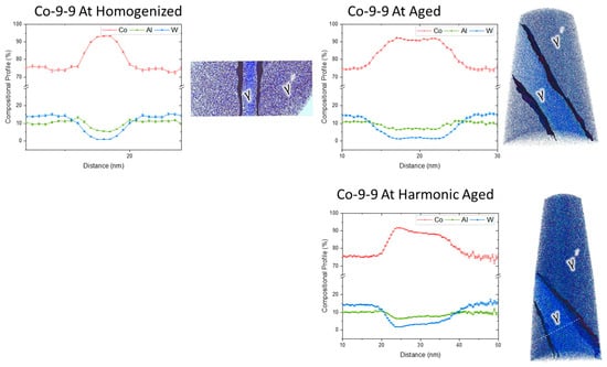 - Xue, F.; Wang, M.; Feng, Q. Alloying Effects on Heat-Treated Microstructure in Co-Al-W-Base Superalloys at 1300 °C and 900 °C. Superalloys 2012, 2012, 813–821. [Google Scholar] [CrossRef]