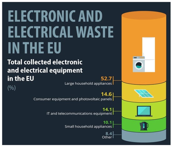 - European Parliament E-Waste in the EU: Facts and Figures (Infographic). Available online: https://www.europarl.europa.eu/news/en/headlines/society/20201208STO93325/e-waste-in-the-eu-facts-and-figures-infographic (accessed on 15 October 2023).